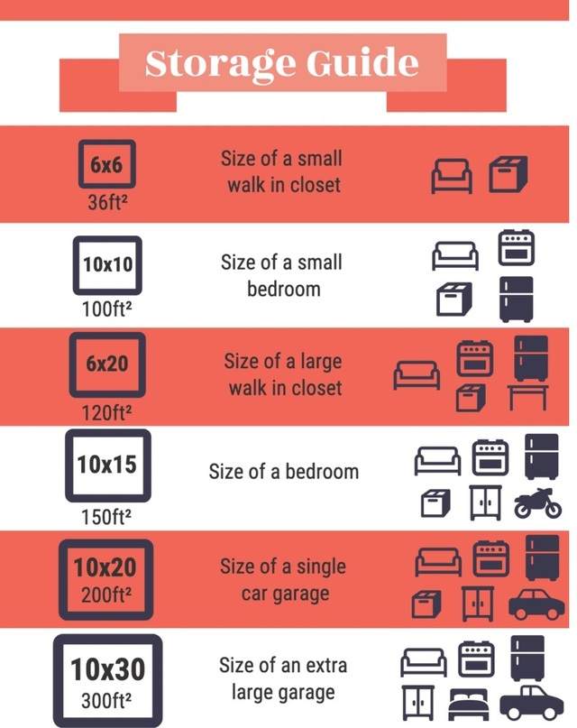 Use this storage guide to help decide what unit fits your needs. We also offer outdoor storage and warehousing solutions. Check out our storage solutions page for more info on that.